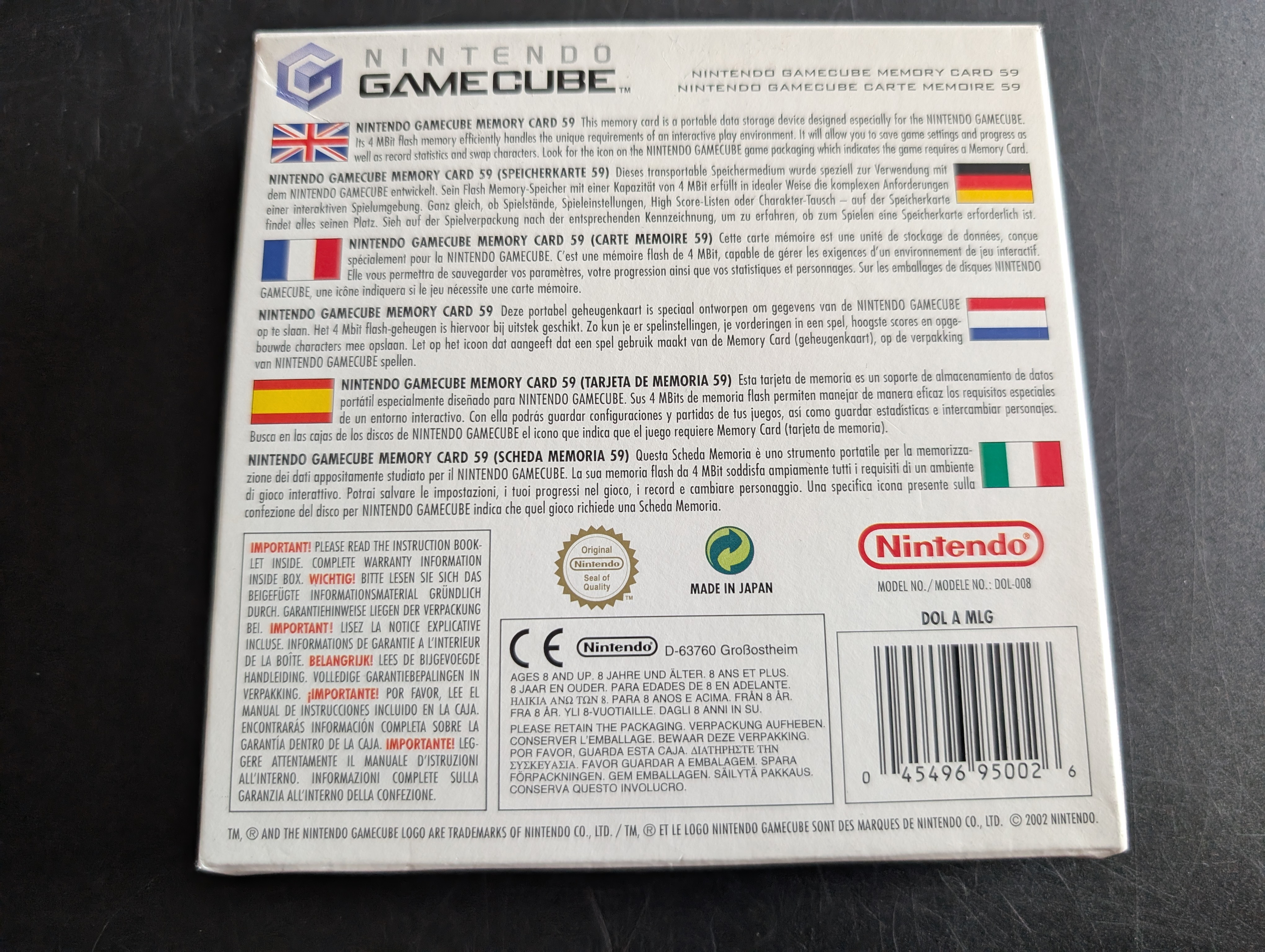Produktinformationen "Nintendo GameCube Memory Card 59 OVP"