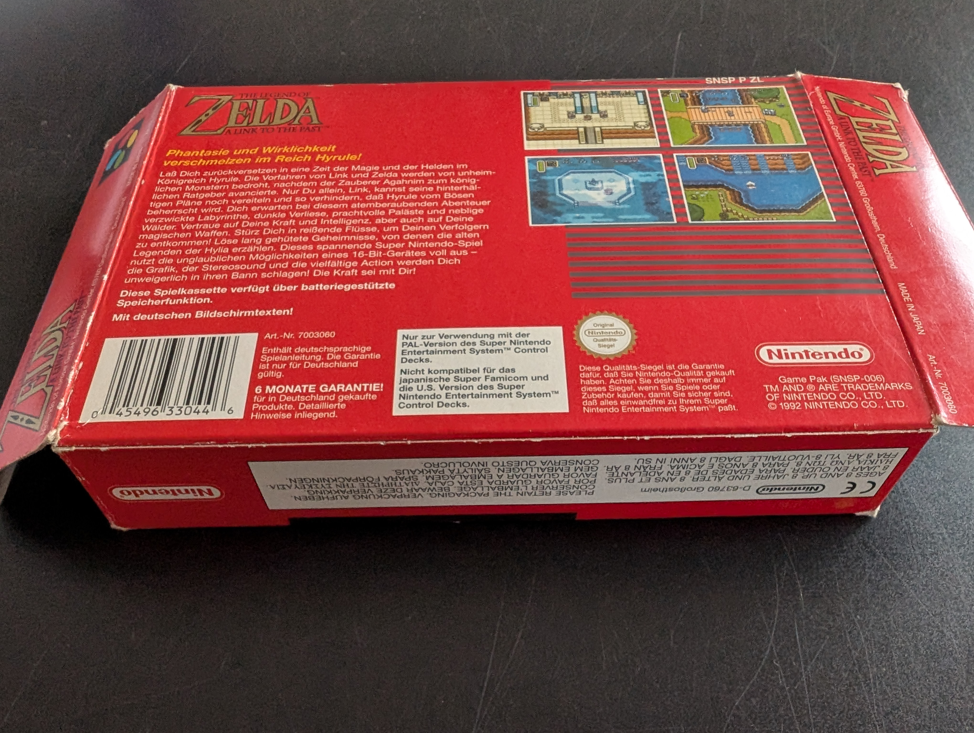 Lass Dich zurückversetzen in eine Zeit der Magie und der Helden im Königreich Hyrule. Die Vorfahren von Link und Zelda werden von unheimlichen Monstern bedroht, nachdem der Zauberer Agahnim zum königlichen Ratgeber avancierte. Nur Du allein, Link, kannst seine hinterhältigen Pläne noch vereiteln und so verhindern, dass Hyrule vom Bösen beherrscht wird. Dich erwartet bei diesem atemberaubenden Abenteuer verzwickte Labyrinthe, dunkle Verliese, prachtvolle Paläste und neblige Wälder. Vertraue auf Deine Kraft und Intelligenz, aber auch auf Deine magischen Waffen. Stürz Dich in reissende Flüsse, um Deinen Verfolgern zu entkommen! Löse lang gehütete Geheimnisse, von denen die alten Legenden der Hylia erzählen. Dieses spannende Super Nintendo-Spiel nutzt die unglaublichen Möglichkeiten eines 16-Bit-Geräts voll aus - die Grafik, der Stereosound und die vielfältige Action werden Dich unweigerlich in ihren Bann schlagen! Die Kraft sei mit Dir!